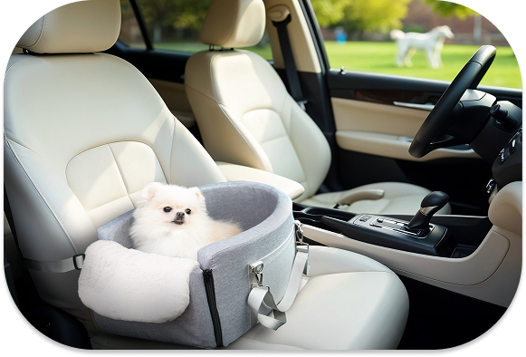 Whether you’re heading out on a road trip, running errands, or exploring new destinations, our pet car seat ensures that your furry companion stays secure and comfortable. Designed for small dogs and pets up to 11 lbs, it easily attaches to your car’s center console, allowing your pet to stay close to you while traveling—reducing anxiety and ensuring a safer, more enjoyable ride.